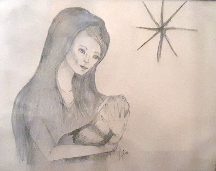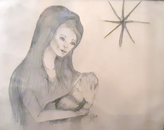 In our first encounter with this experience, Alexi chose to work in pencil. What she created was a rendering of the Madonna and Child.